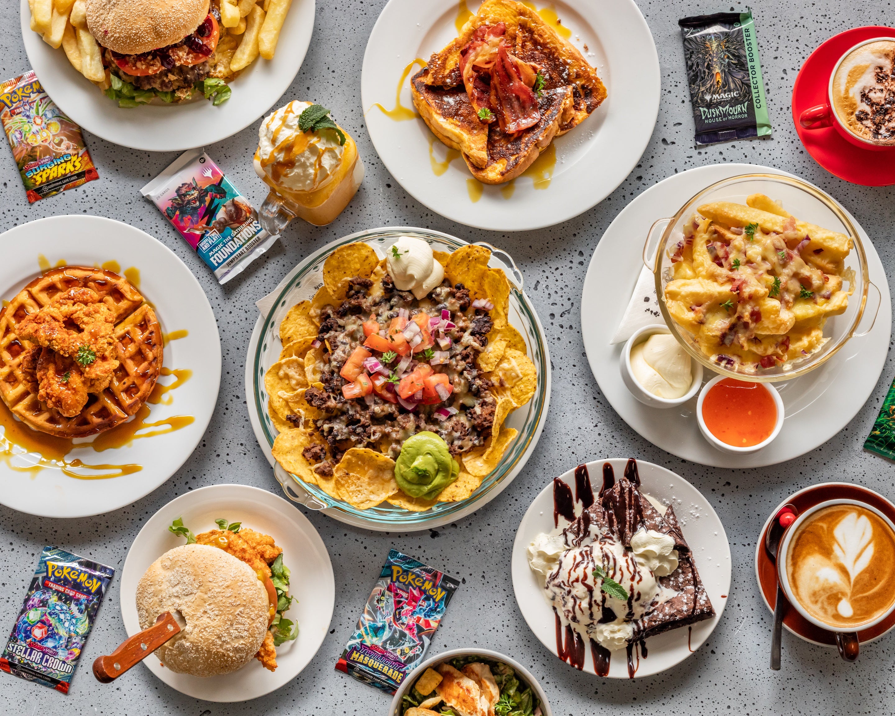 Our "We Got Beef" burger is a featured item on our menu. Other substantial options include the Chicken & Waffles , Loaded Fries , and Nachos with spiced mince.
